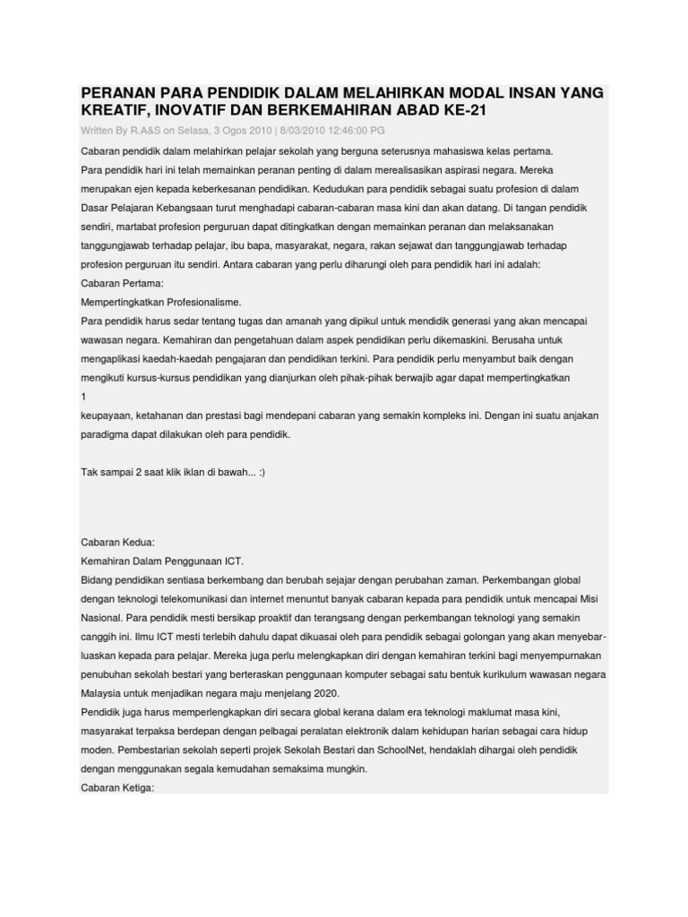 Peranan Para Pendidik Dalam Melahirkan Modal Insan Yang Kreatif Pdf